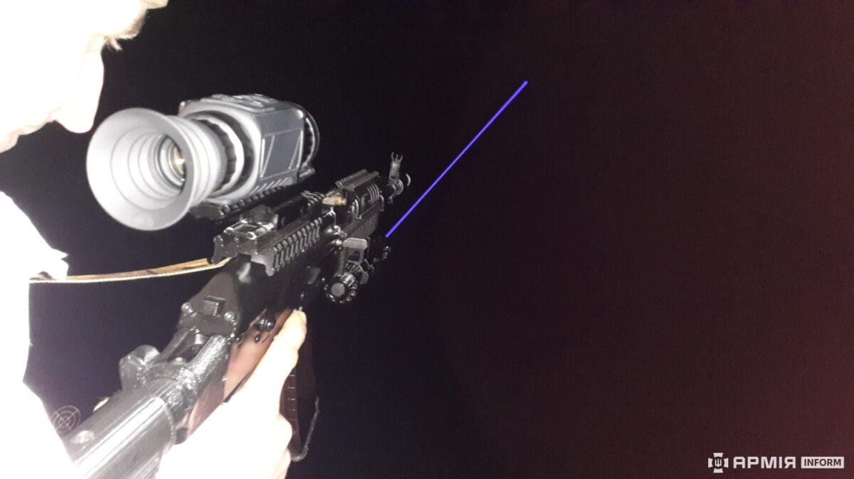 Під стволом автомата у командира групи — пристрій для цілевказання. Він вмикається і тонкий фіолетовий промінь злітає у небо. Військовий, тримаючи так автомат, стає схожим на персонажа «Зоряних війн». Це яскраве видовище, тому просимо командира подовше потримати фіолетову стрічечку у темному січневому небі.