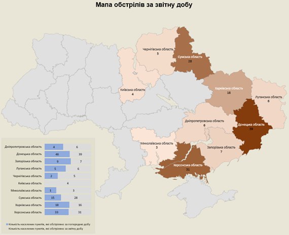 Зазначається, що противник атакував 145 населених пунктів та 210 об’єктів інфраструктури з різних видів озброєння. Зокрема, з гранатометів, мінометів, артилерії, танків, РСЗВ, ОТРК, БПЛА, тактичної та стратегічної авіації.