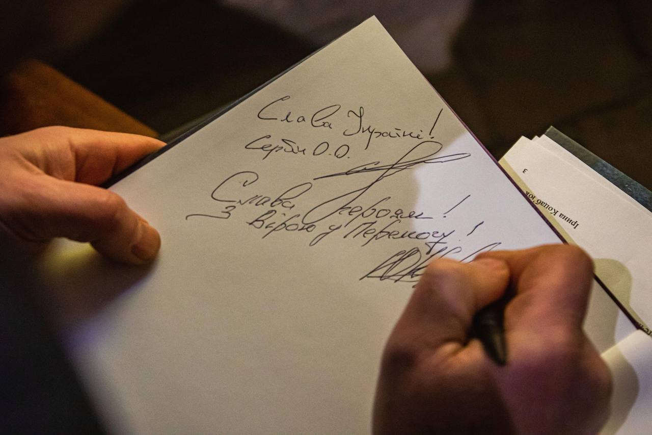 «У книзі представлені зображення жахіть війни та повсякденних буднів українських військових, які стримували та продовжують стримувати противника на Бахмутському напрямку», — зазначили організатори.