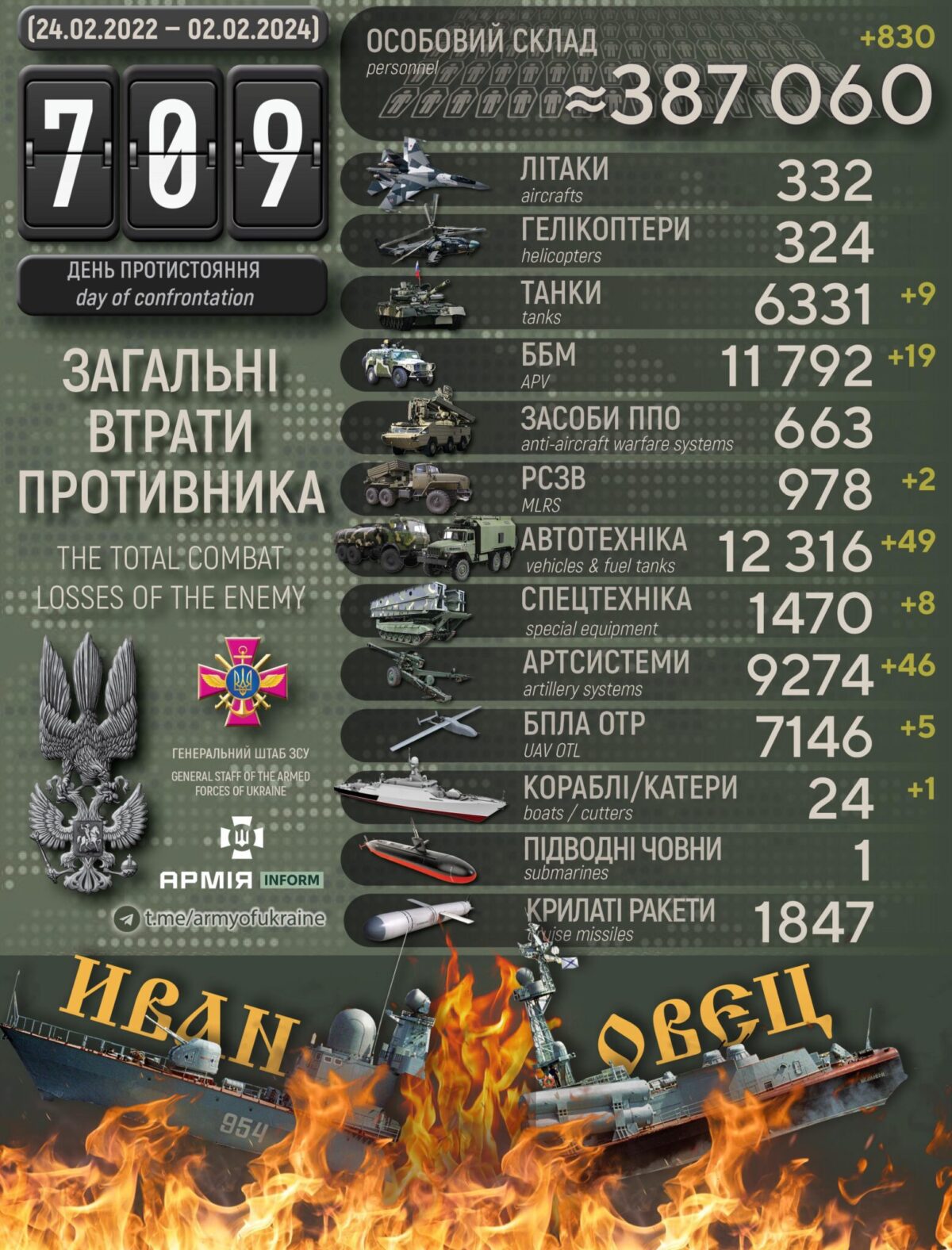 Джерело: Генеральний штаб Збройних Сил України станом на 02.02.24.