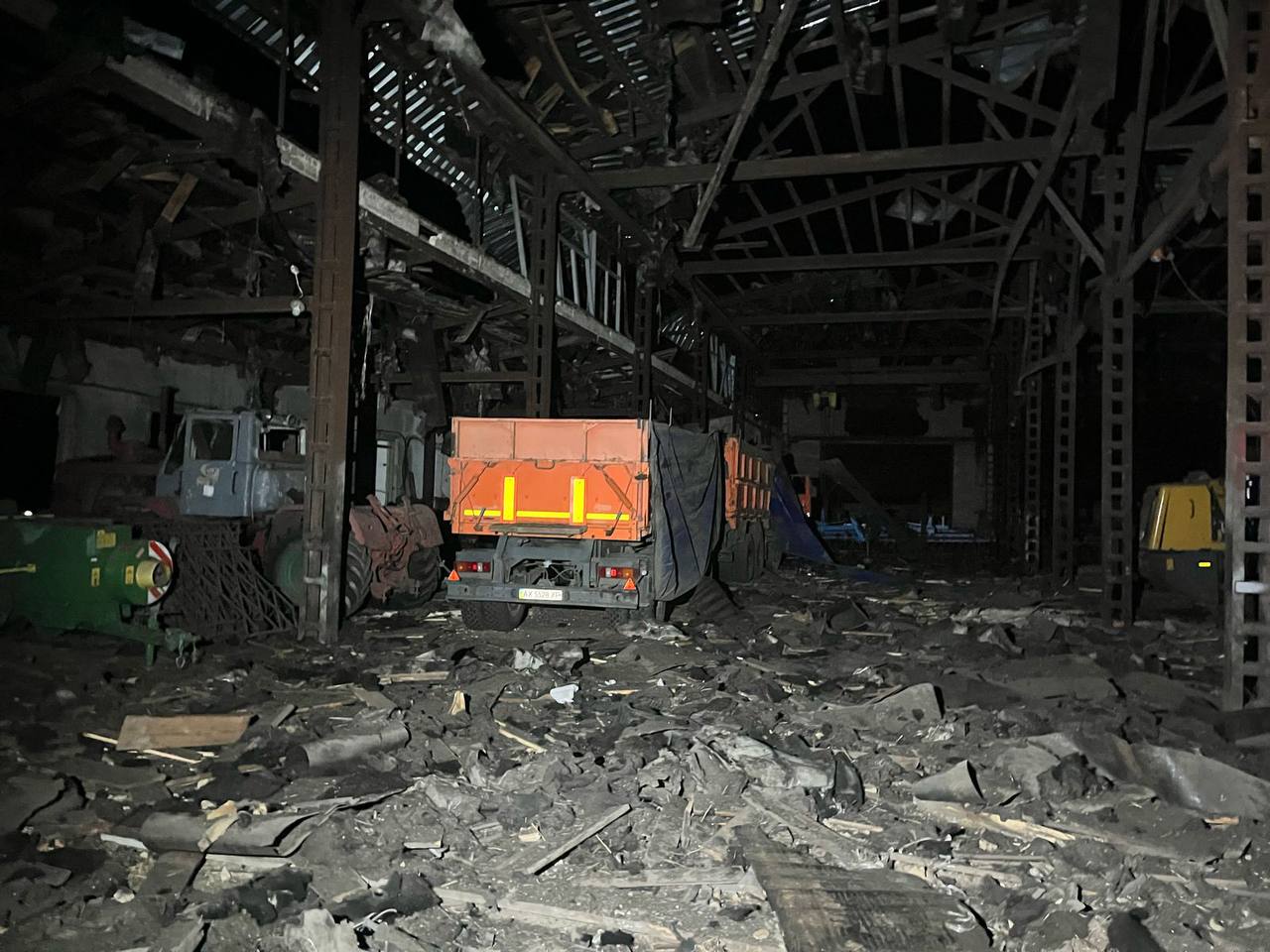 «О 20:30 внаслідок ворожого обстрілу двома КАБами с. Горяне Куп’янського району пошкоджено адміністративну будівлю, складське приміщення, майстерню агропідприємства, знищено с/г техніку, є пошкодження електромереж. Також пошкоджено вікна та паркан поряд розташованого житлового будинку», — повідомив Сергій Лисак.