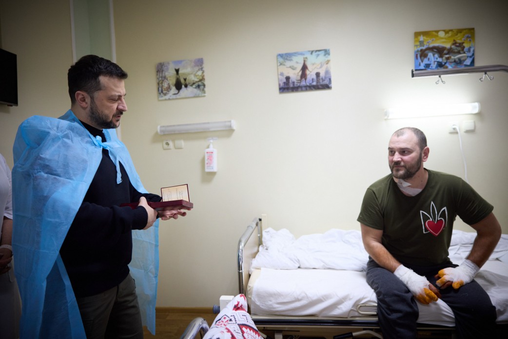 В одному з медичних закладів Кропивницького Президент України ознайомився з умовами лікування українських військовослужбовців, які зазнали важких поранень під час боїв із російськими окупантами на сході України, зокрема в районі Роботиного та Вербового.