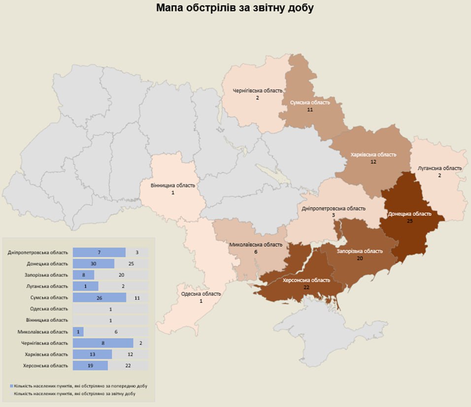 «Загалом з різних видів озброєння — міномети, артилерія, танки, РСЗВ, ЗРК, БПЛА та тактична авіація — були атаковані 105 населених пунктів та 48 об’єктів інфраструктури», — йдеться в повідомленні.