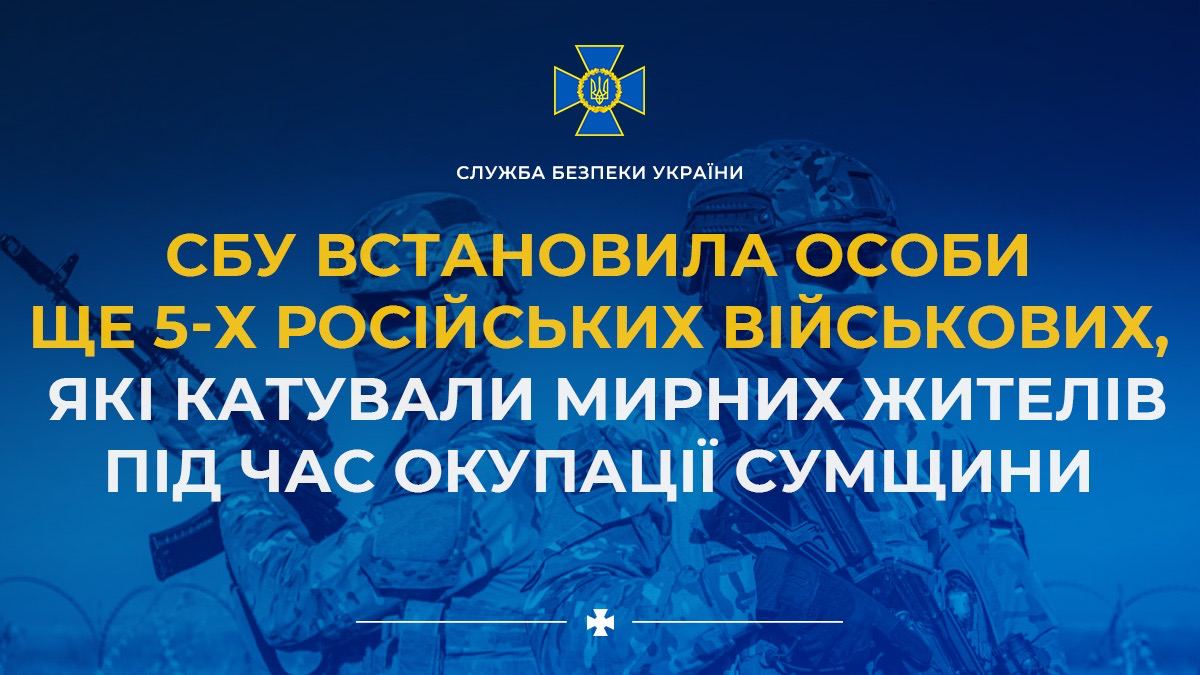 Служба безпеки ідентифікувала ще п’ятьох російських військових, які вчиняли воєнні злочини проти цивільного населення у період тимчасової окупації Сумщини.