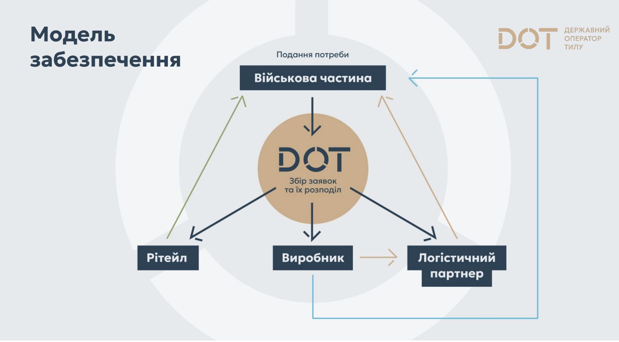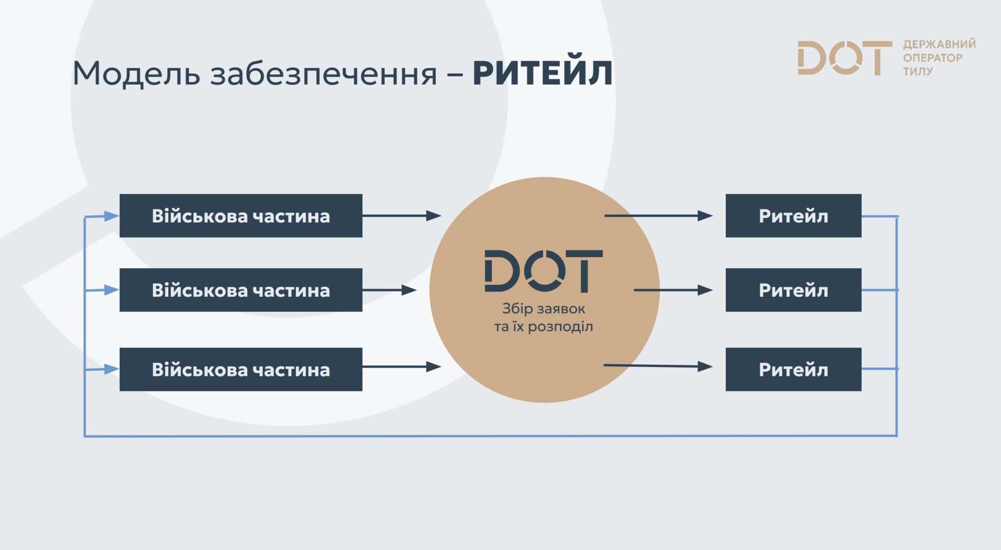 На початку лютого Державний оператор тилу (ДОТ) оголосив перші закупівлі харчування за моделлю мережі — коли ритейлери постачають весь перелік продуктів на військові частини.