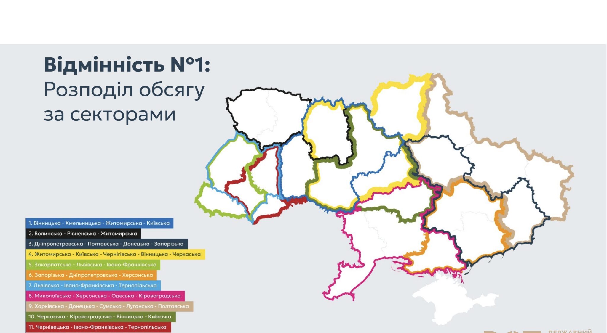 До складу кожного сектору входять обов’язкові та додаткові області. Додаткові області в межах секторів можуть бути одночасно закріплені за декількома постачальниками. Це зроблено для управління потенційними ризиками щодо забезпечення безперервності постачання.