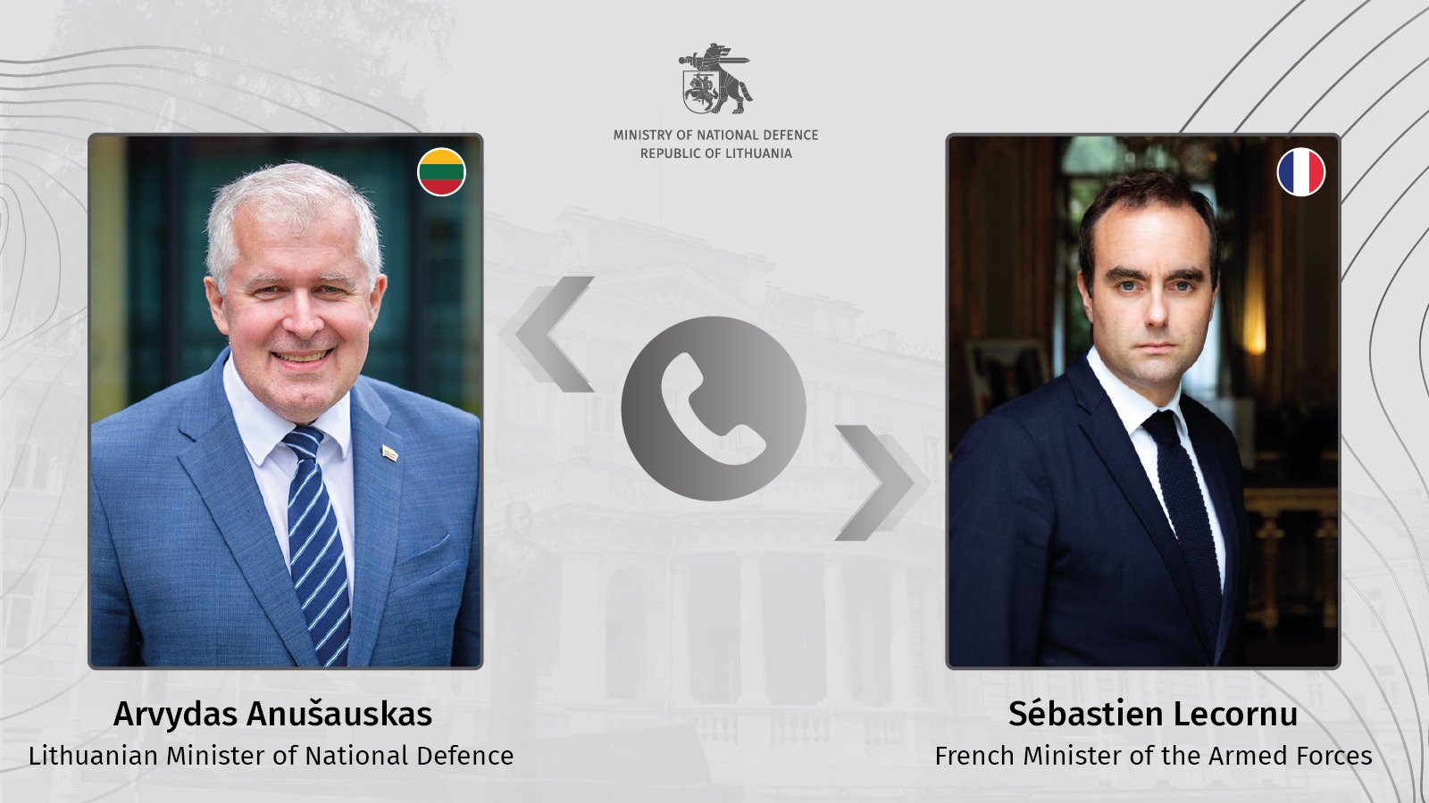 Міністр оборони Литви Арвідас Анушаускас провів відеодзвінок з міністром оборони Франції Себастьяном Лекорню.