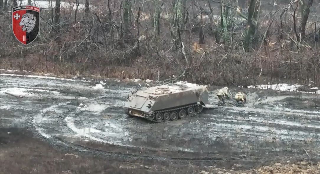Їм на допомогу під’їжджає бронетранспортер М113 з 63-ї бригади.