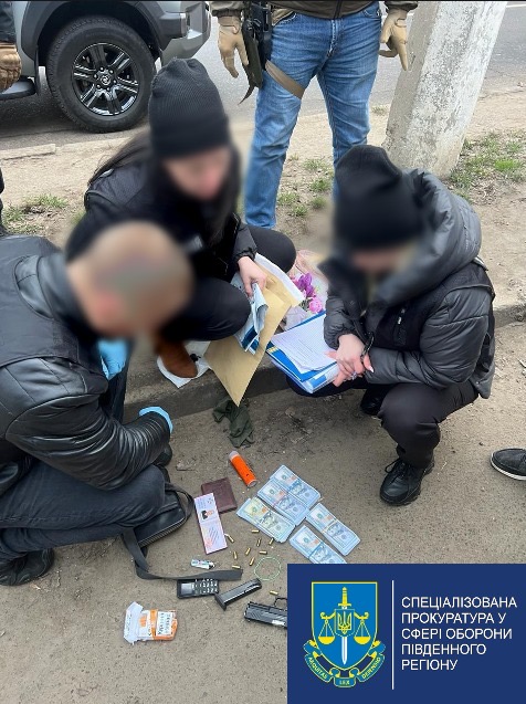 Під час слідчих дій у затриманого виявлено пістолет невідомого походження та гроші українських воїнів, які він намагався вкрасти в потерпілого.