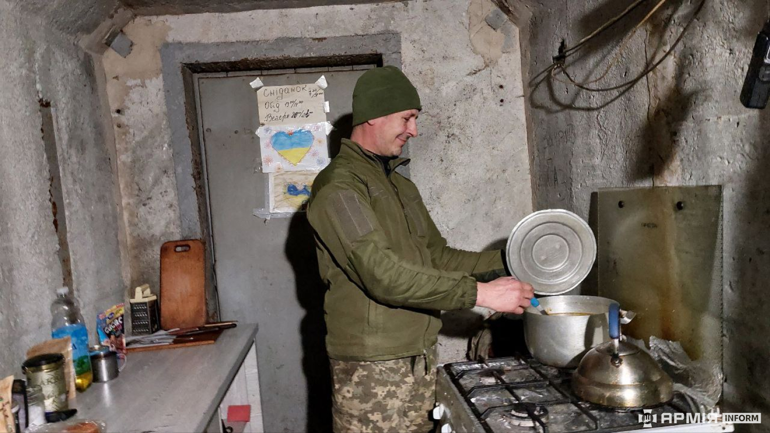 За цей час хлопці облаштували тут нехитрий побут — мають все необхідне для більш-менш «комфортного» життя: укріплені сухі бліндажі, в яких постійно горять теплі буржуйки, кухня з гарячим обідом, холодильником, чайником і запашною кавою, вбиральні і душ.