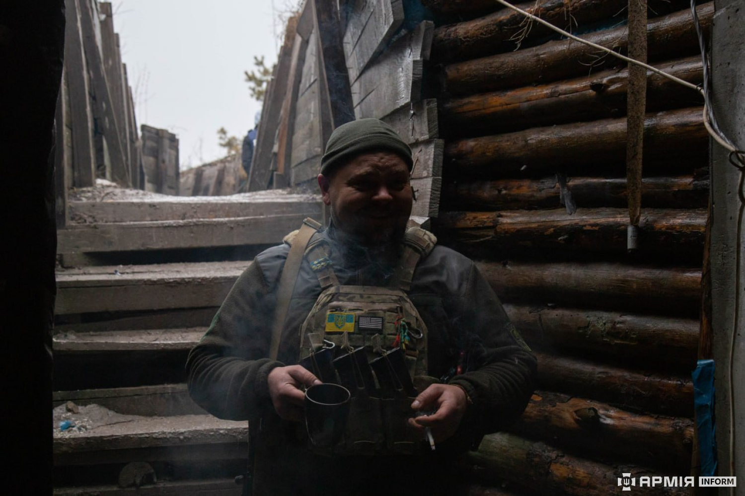 Зустрічає нас командир взводу на псевдо «Марс». Саме він став «винуватцем» нашої поїздки сюди — сьогодні армієць отримує державну нагороду з рук командира.
