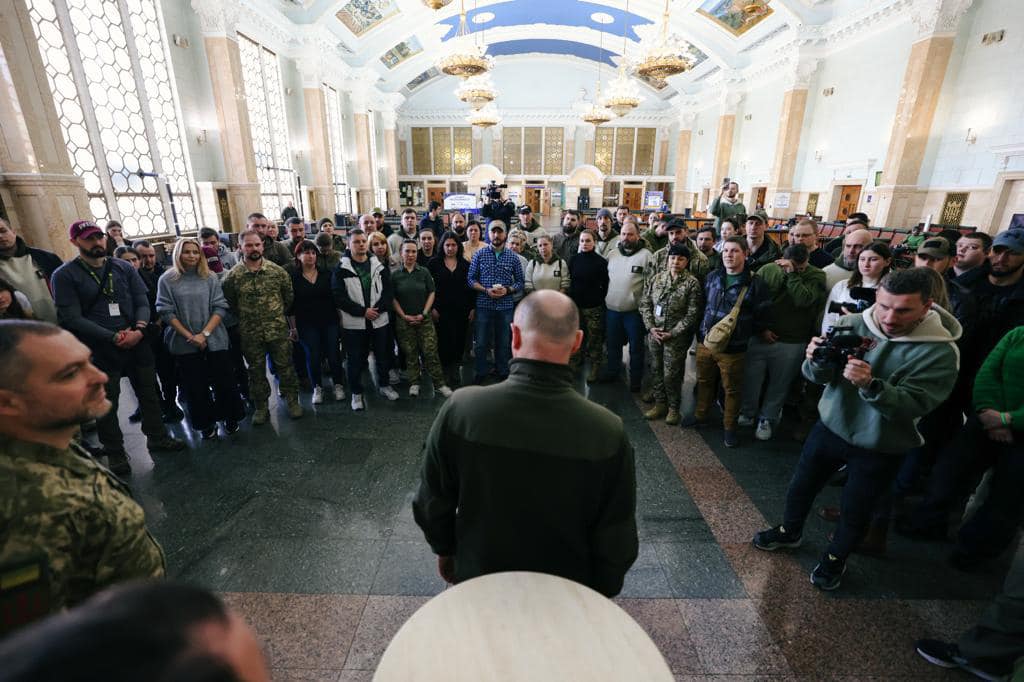 На Центральному залізничному вокзалі міста Києва військових медиків зустрів командувач Медичних сил Збройних Сил України генерал-майор медичної служби Анатолій Казмірчук та директор філії «Пасажирська компанія» АТ «Укрзалізниця» Олександр Перцовський.