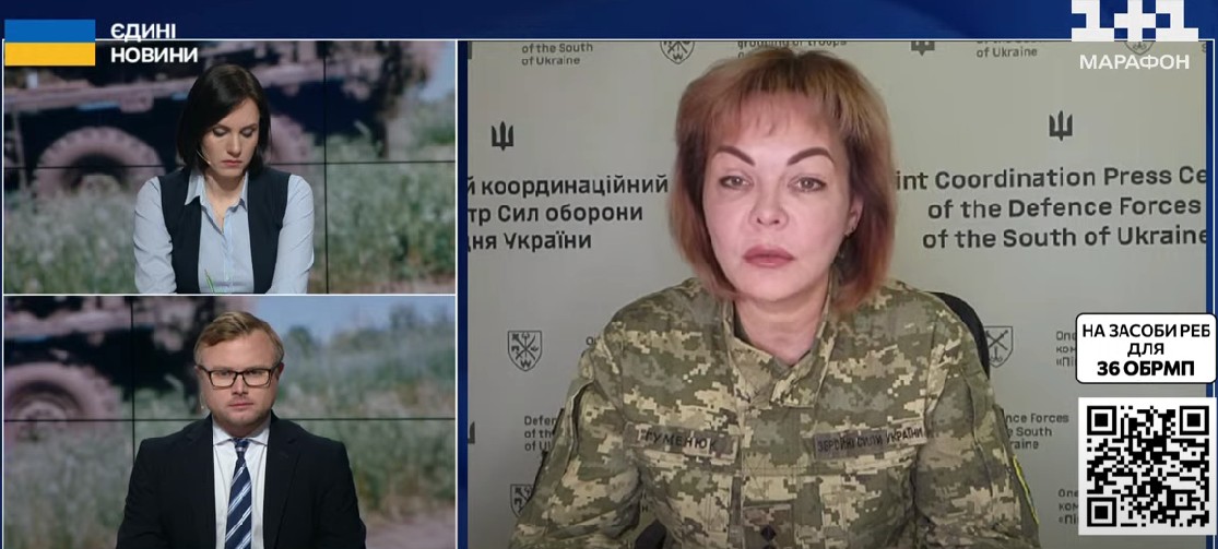 Про це розповіла начальник об’єднаного координаційного пресцентру Сил оборони півдня України полковник Наталія Гуменюк в ефірі телемарафону «Єдині новини».