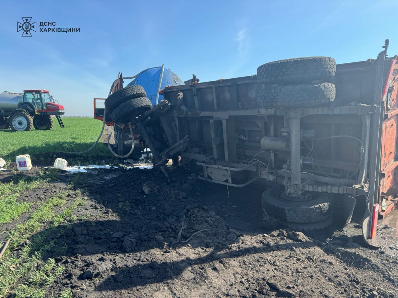 У першому випадку на вибухонебезпечному предметі підірвалася вантажівка. Подія трапилась у полі поблизу села Іванівка Чугуївського району.