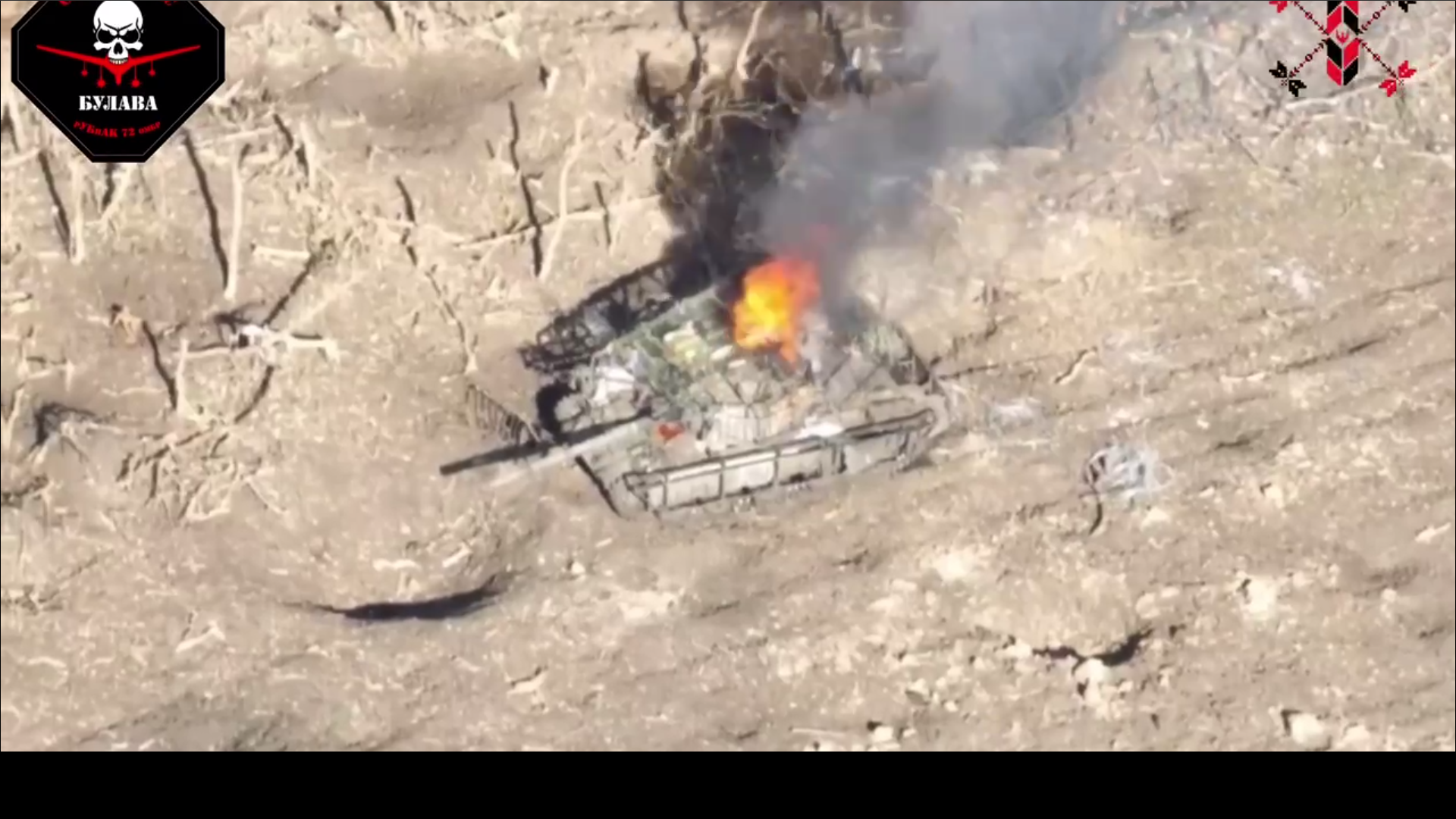 Танк був захищений надбудовою з металевої сітки, але це йому не допомогло.