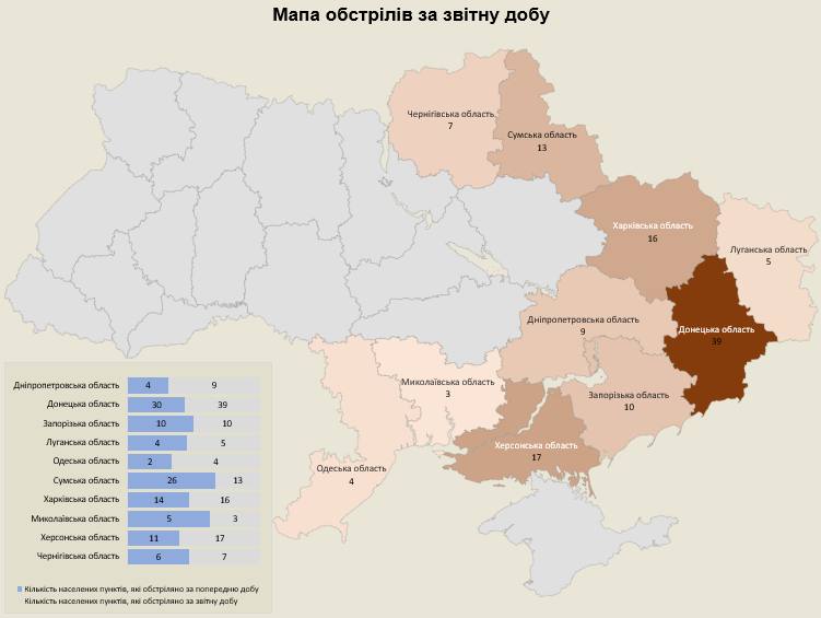 Війська росармії атакували 123 населені пункти та 132 об’єкти інфраструктури з різних видів озброєння. Зокрема, з мінометів, танків, артилерії, РСЗВ, БПЛА, ЗРК, ОТРК та тактичної авіації.