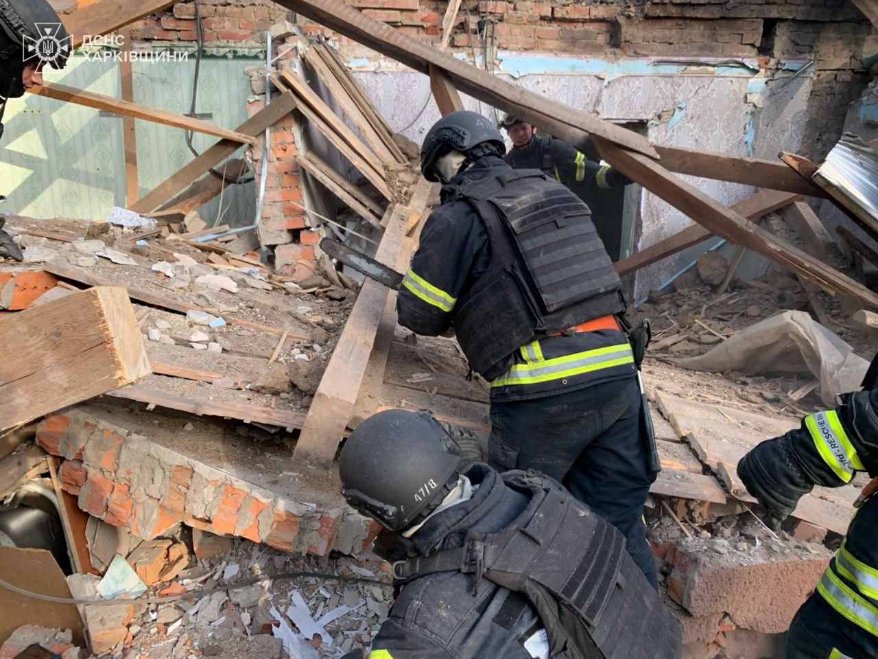 Унаслідок атаки під завалами одноповерхової будівлі господарства опинився чоловік.