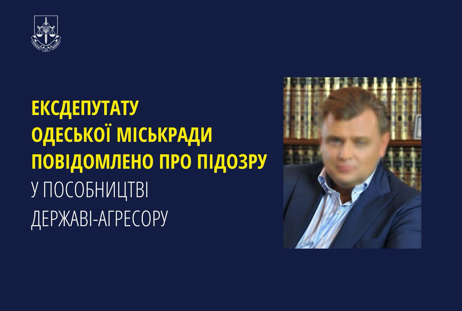 Колишнього депутата Одеської міськради заочно підозрюють у пособництві державі-агресору (ч. 1 ст. 111-2 КК України).