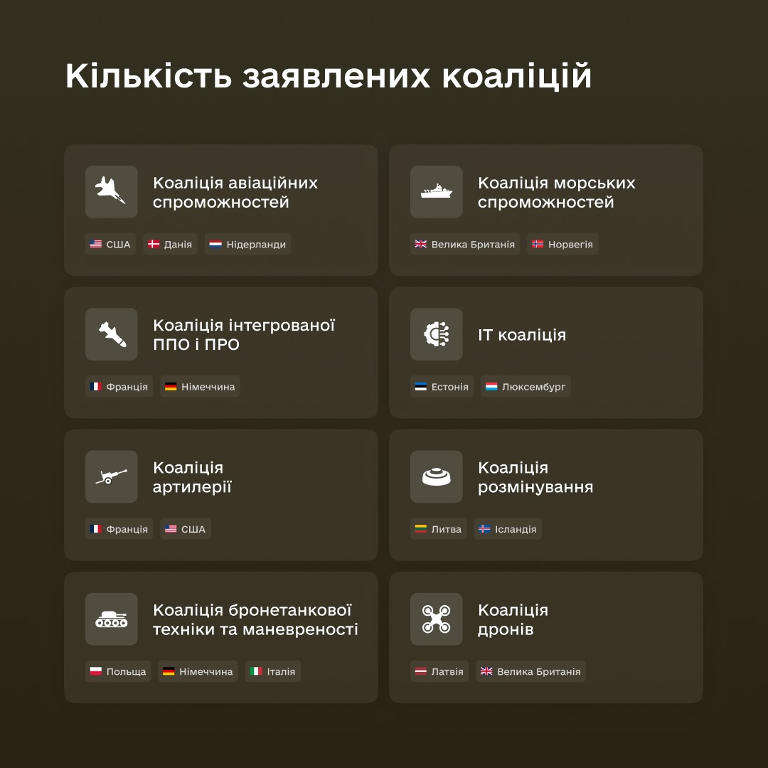 Як відомо, формат коаліцій спроможностей був створений у 2023 році для більш ефективного надання допомоги країнами-партнерами в рамках роботи Контактної групи з питань оборони України.