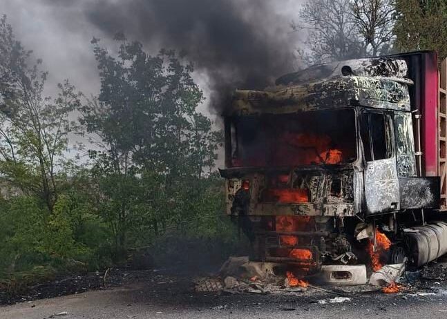 «На трасі, що поблизу села Осокорівка, окупанти скинули з дрона вибуховий предмет на вантажівку», — йдеться в повідомленні.