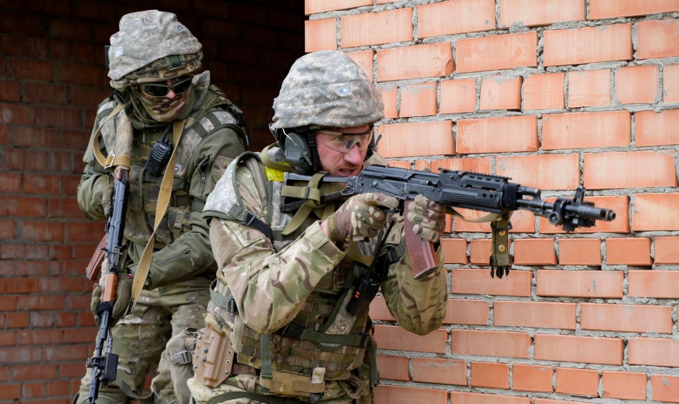 На полігоні у Великій Британії українські військові під керівництвом румунських інструкторів відпрацьовують бій у міській забудові.