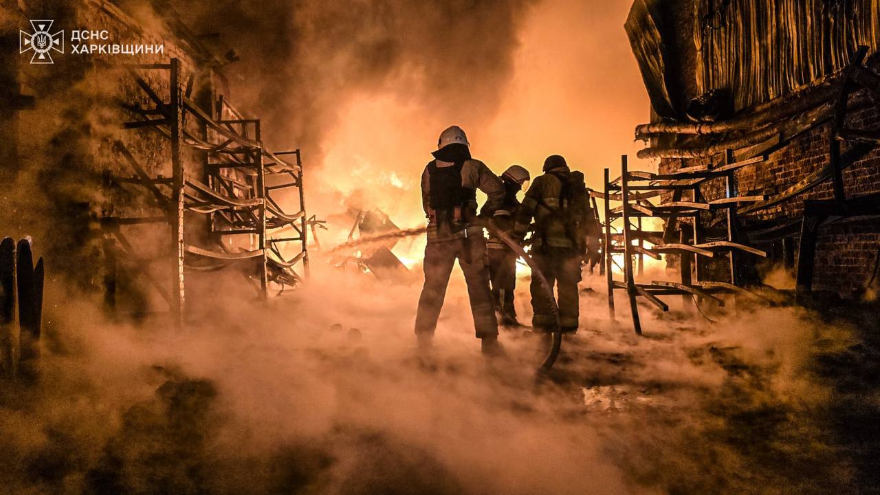 Голова Харківської ОВА Олег Синєгубов повідомив, що у результаті падіння уламків збитих «шахедів» є загорання цивільної двоповерхової офісної будівлі в Основʼянському районі міста Харків.