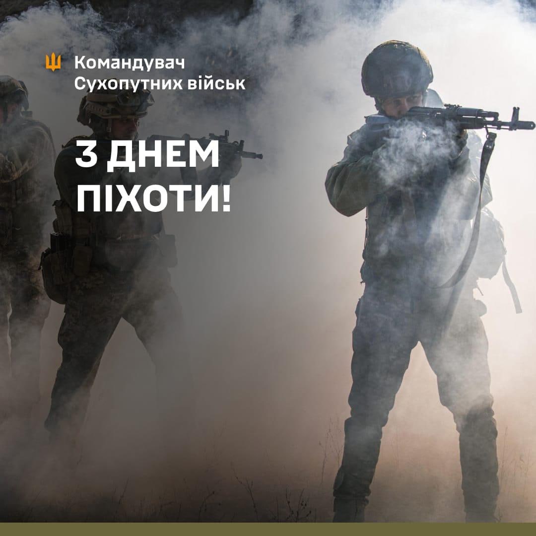 Командувач Сухопутних військ Збройних Сил України генерал-лейтенант Олександр Павлюк оприлюднив привітання з Днем піхоти.