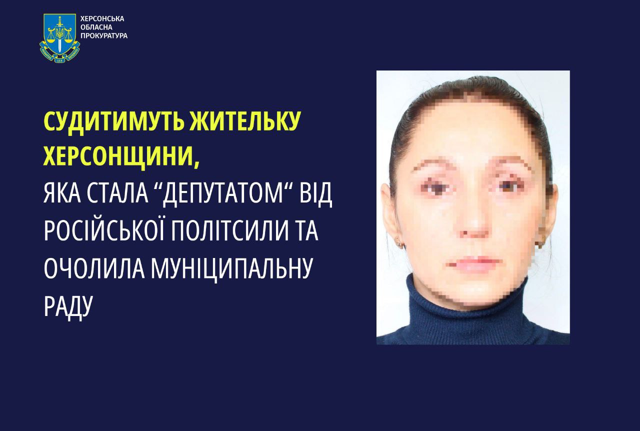 У прокуратурі судитимуть жительку Херсонщини, яка стала «депутатом» від російської політсили та очолила «муніципальну раду».