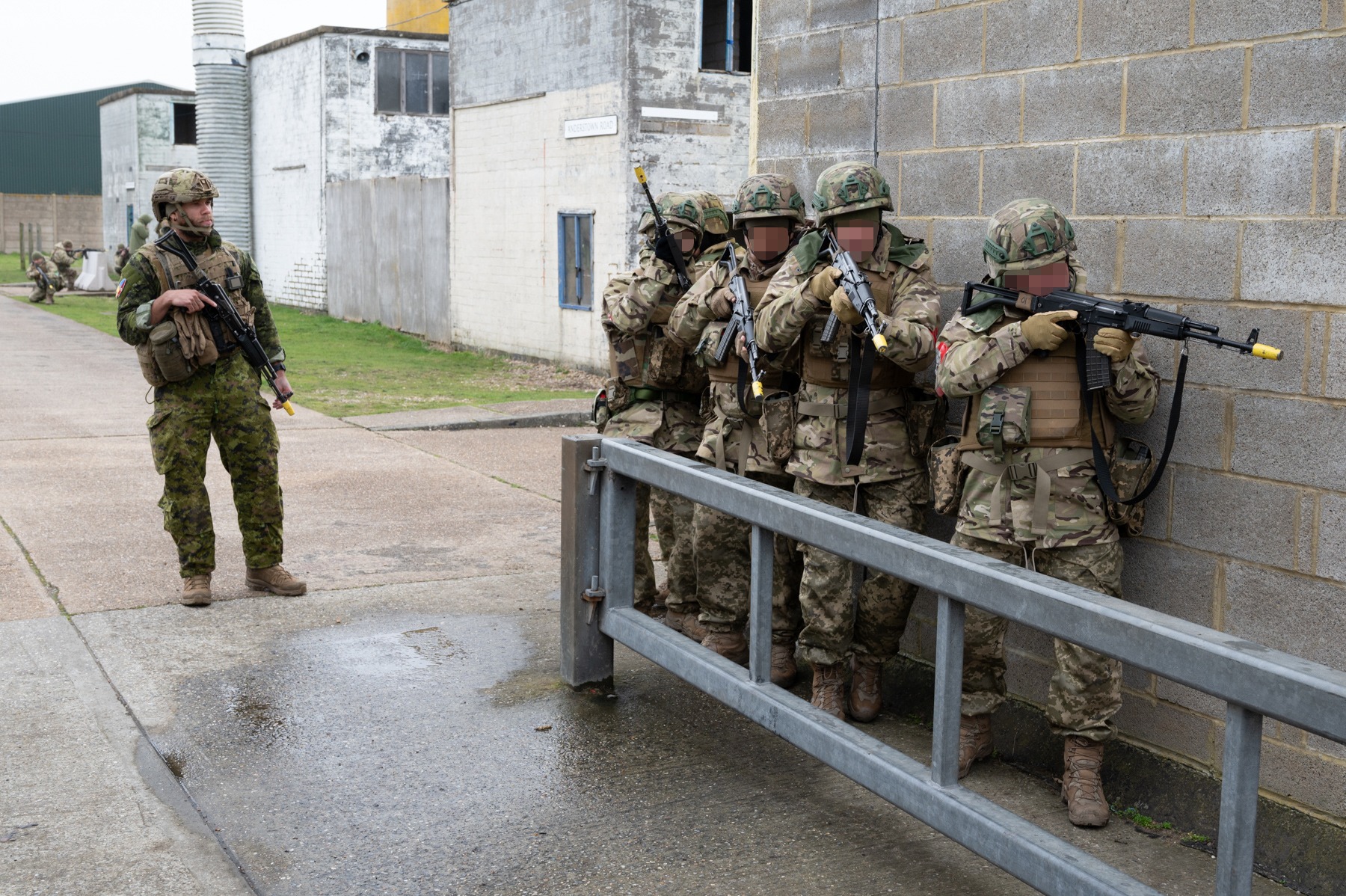 Канадські інструктори та інструкторки навчальної місії ЮНІФАЄР працюють в команді й тренують українських новобранців на території Великої Британії в рамках багатонаціональної операції ІНТЕРФЛЕКС, щоб вони вміли захистити один одного та виконати завдання під час зачистки міста.