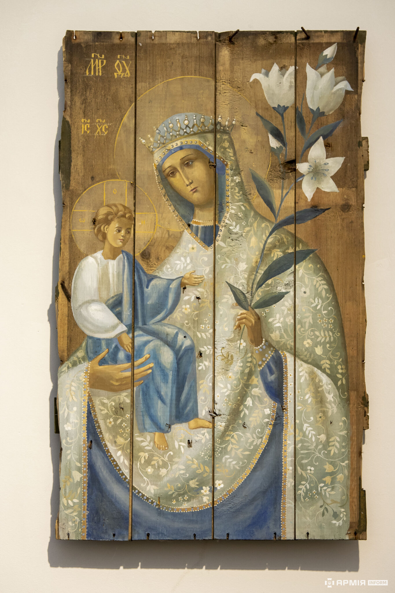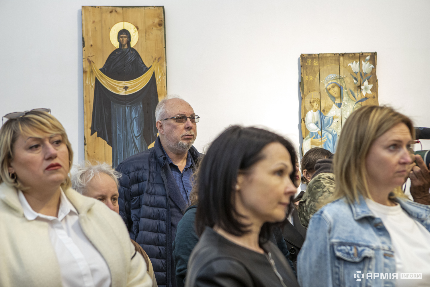 У Великій лаврській дзвіниці Києво-Печерської лаври за ініціативи Міністерства культури та інформаційної політики України до Дня Матері відкрилась виставка Богородичних ікон на ящиках з-під набоїв.