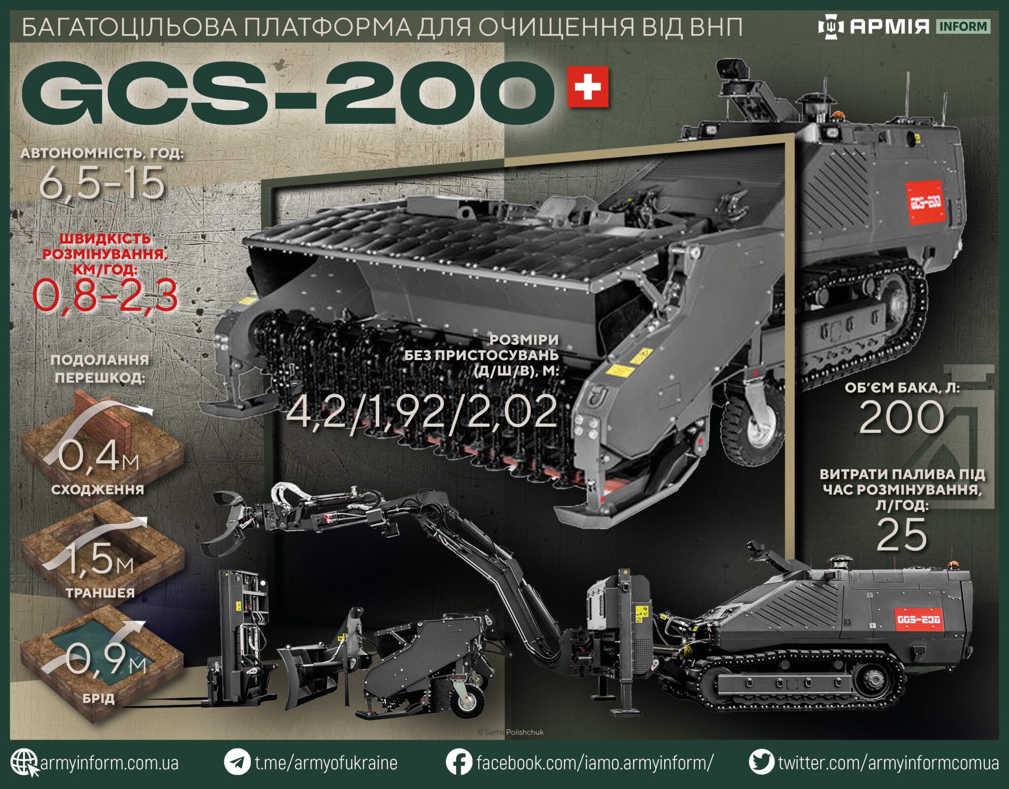 Сьогодні в Україні працює 34 платформи GCS — їх використовують і військові сапери, і службовці ДСНС. Вчора був представлений черговий етап — група саперів, яка працює в межах гуманітарного розмінування, отримала ще один такий комплекс.