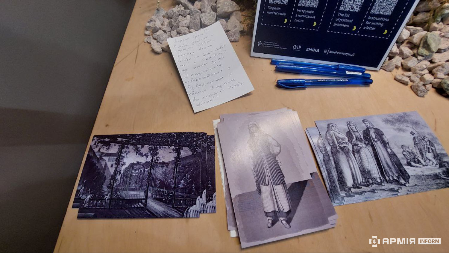 Спускаючись до підвального приміщення, де знаходиться решта виставки, на окремих скетчах можна прочитати щоденник депортації «Райські метелики» авторки Мавілє Халіл, в основу яких закладені реальні історії осіб, що пережили депортацію.