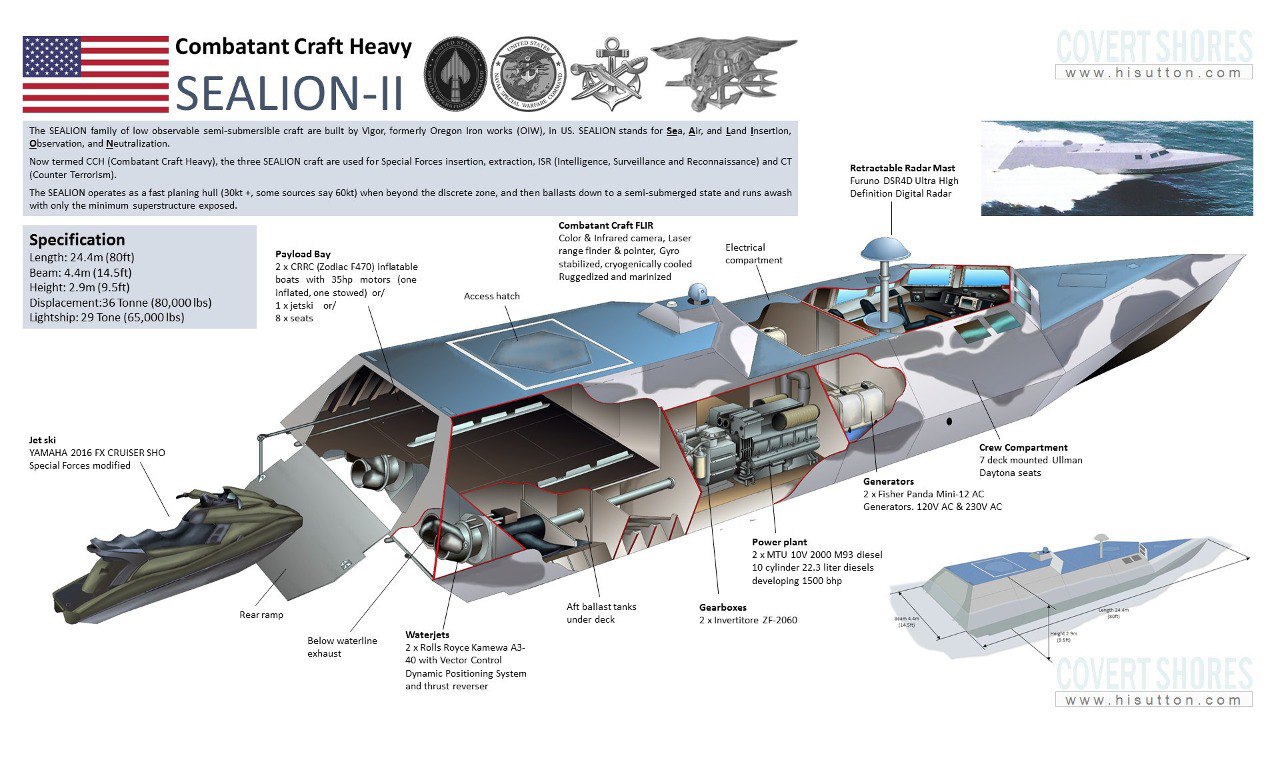 «CCH — це повністю закритий напівзанурювальний корабель з клімат-контролем, який працює в складних умовах», — йдеться у запиті Пентагону на 2025 рік. «CCH — це найуніверсальніший і найбільш живучий бойовий корабель військово-морського спецназу та найкращий вибір для виконання важливих завдань морської розвідки, спостереження та рекогностування».