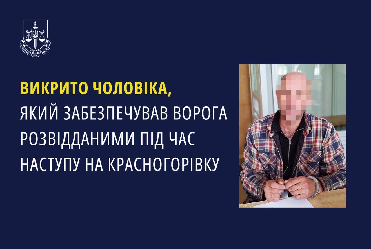 За процесуального керівництва Донецької обласної прокуратури викрито чоловіка, який забезпечував ворога розвідданими під час наступу на Красногорівку.