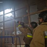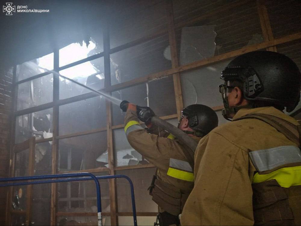 Зокрема, пошкоджена двоповерхова будівля, в якій розташовані магазин і фітнес-зал, що не експлуатуються. Виникла пожежа.