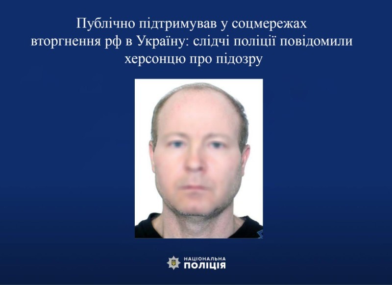 Також правоохоронці з’ясували, що зловмисник на платформі соціальної мережі викладав пости, в яких закликав херсонців брати участь у незаконному референдумі із приєднання Херсонської області до складу держави-агресора.