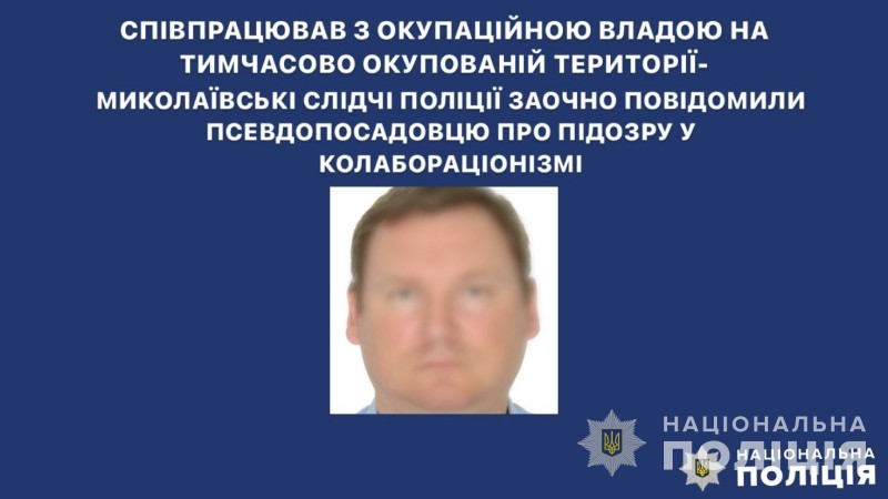Нині йому заочно повідомили зловмиснику про підозру у скоєнні злочину, передбаченого ч. 5 ст. 111-1 Кримінального кодексу України «Колабораційна діяльність». Санкція статті передбачає до 10 років позбавлення волі з позбавленням права обіймати певні посади або займатися певною діяльністю на строк від 10 до 15 років та з конфіскацією майна або без такої.