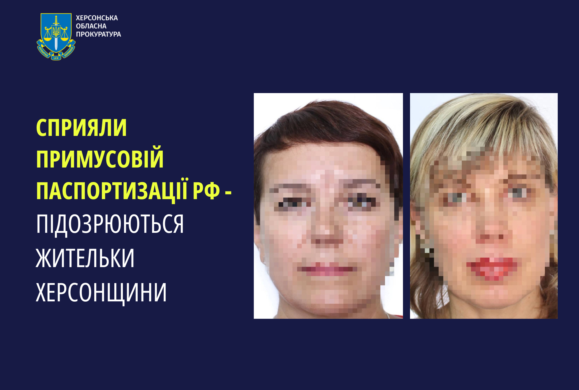 За процесуального керівництва Херсонської обласної прокуратури двом жителькам регіону заочно повідомлено про підозру у колабораційній діяльності.