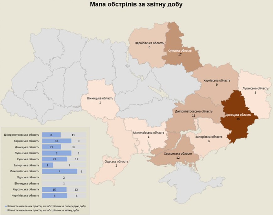 «Загалом застосовано різні види озброєння, мінометів, артилерії, танків, РСЗВ, ОТРК, БПЛА та тактичної авіації. Атаковано 98 населених пунктів та 117 об’єктів інфраструктури», — йдеться в повідомленні.