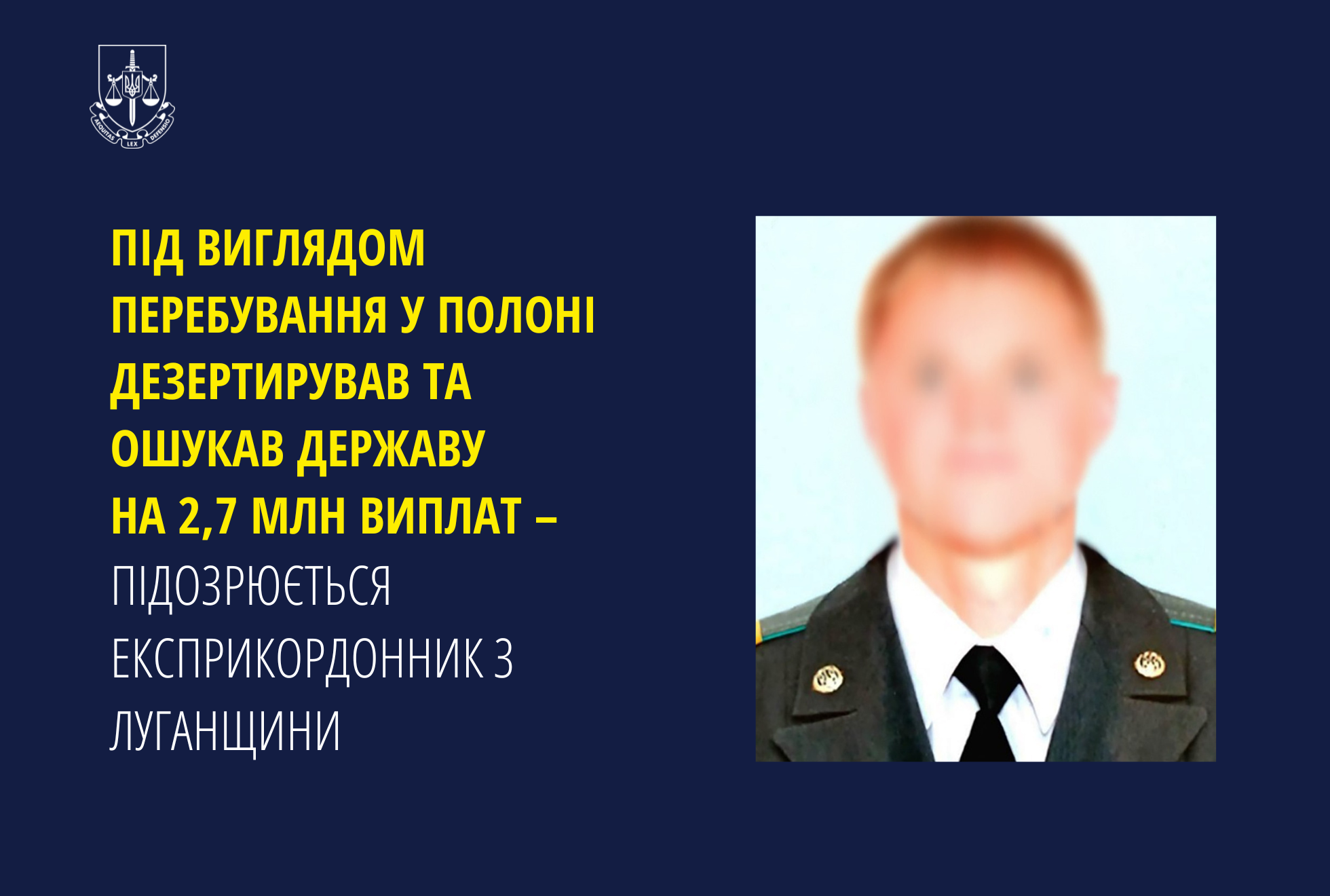 Зараз йому повідомлено про підозру колишньому прикордоннику за фактами дезертирства та шахрайства, вчиненого в особливо великих розмірах (ч. 4 ст. 408, ч. 2 ст. 28 ч. 5 ст. 190 КК України).