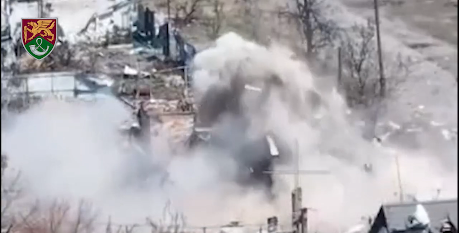 Оператори FPV-дронів дочекалися, поки ворог назбирається в хаті й вдарили по ній всією потужністю протитанкових мін.