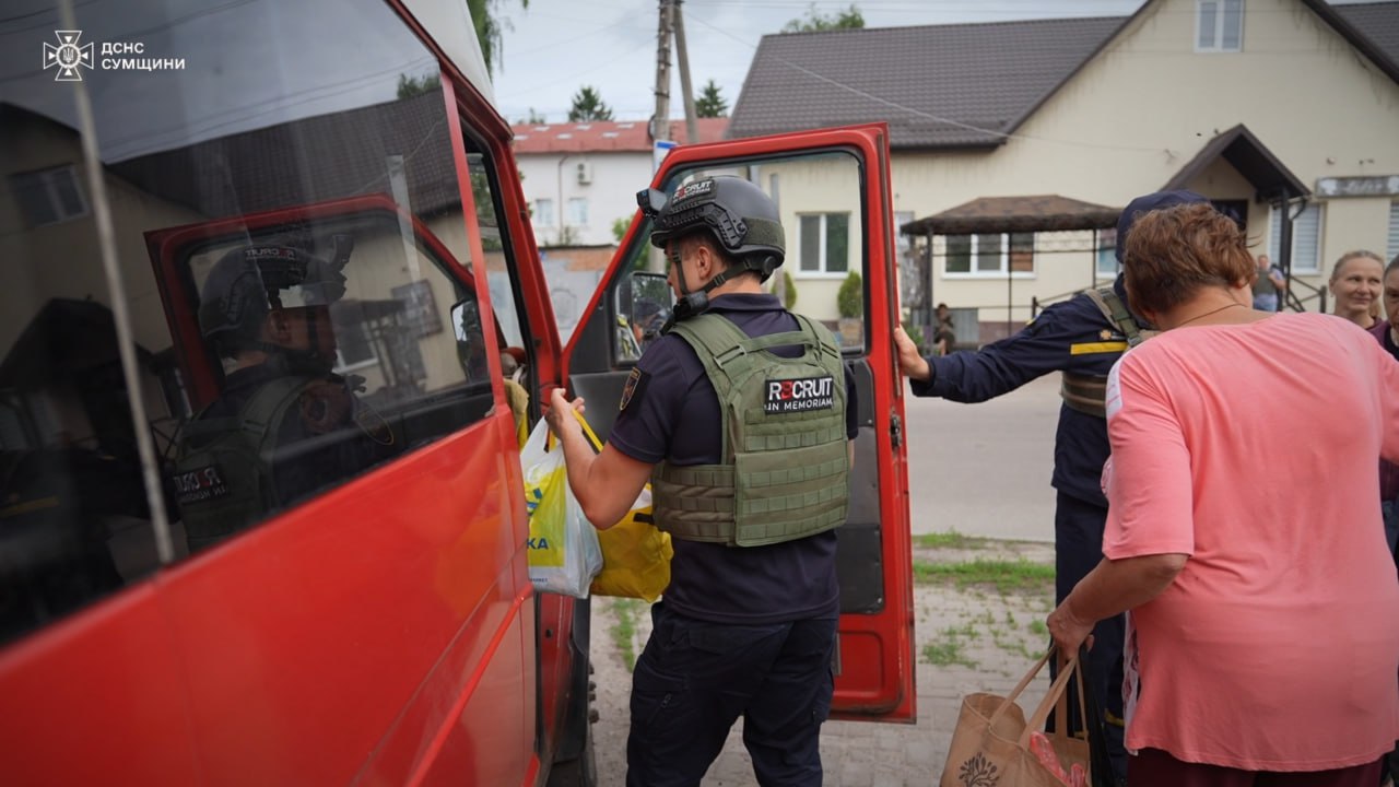 Рятувальники ДСНС забезпечують білопільчан транспортом для виїзду з рідного міста, що стало небезпечним через російські обстріли.