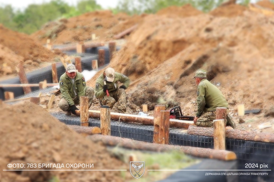 Військовослужбовці 783 бригади охорони Державної спеціальної служби транспорту активно продовжують роботи з облаштування фортифікацій.