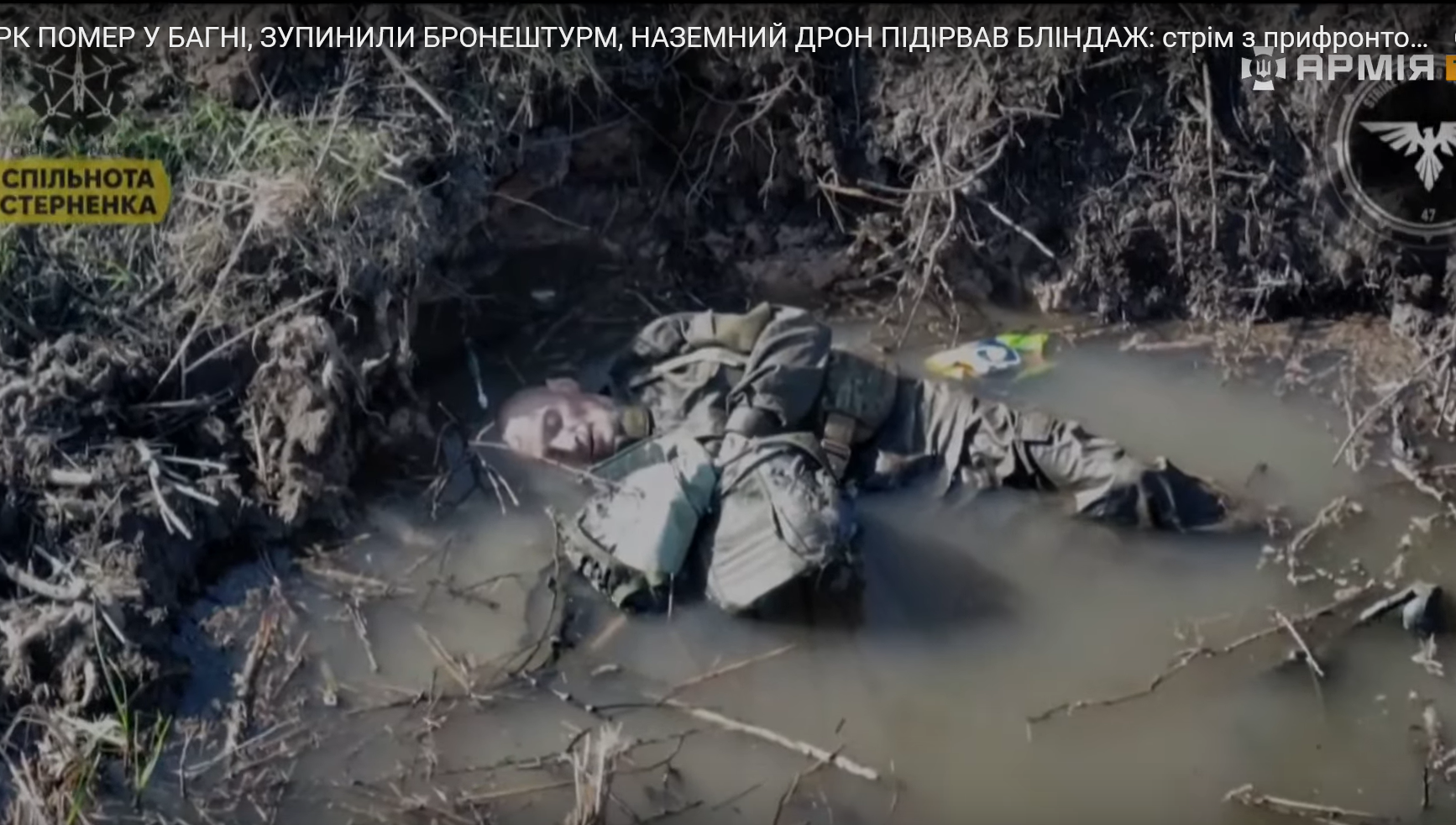 Для цього він заліз в калюжу і завмер. Але скласти іспит акторської майстерності росіянину не вдалося, то наступний FPV-дрон перетворив його з удаваного трупа на справжнього.