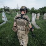 Десь по цвинтарю проходять мінні загородження, які російські окупанти залишили під час відступу. Десь міни лежать перед позиціями, які були накопані прямо у дворі приватного будинку.