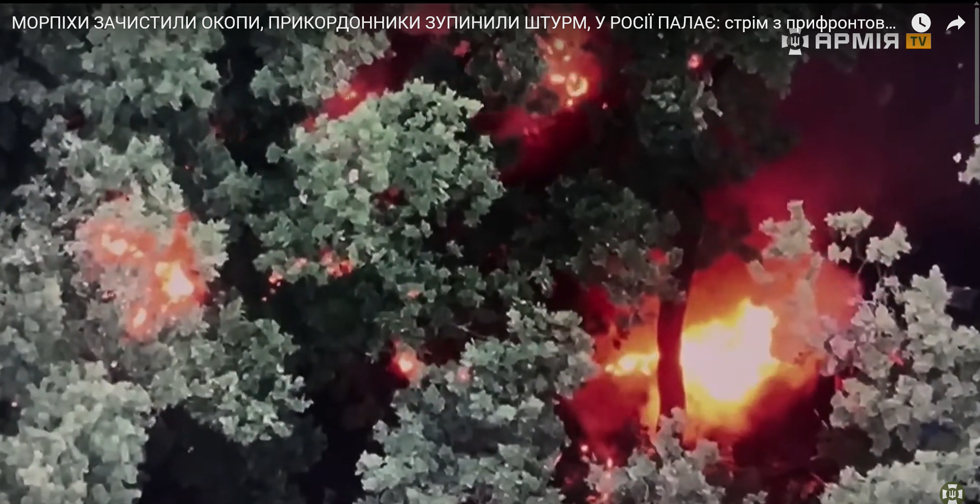 Відео було оприлюднено на стрімі АрміяTV. Наші аеророзвідники спочатку фіксували місця, де окупанти розвантажували боєприпаси, а потім завдавали ударів. Ворог ховався під деревами, тож довелося більше використовувати не FPV-дрони, а скиди з дронів. Відео коментує командир 414 батальйону безпілотних авіаційних систем у складі морської піхоти капітан Роберт Бровді, відомий за позивним «Мадяр» (відео з 24:41). Як повідомляла АрміяInform, український боєць застрелив двох окупантів під Авдіївкою.