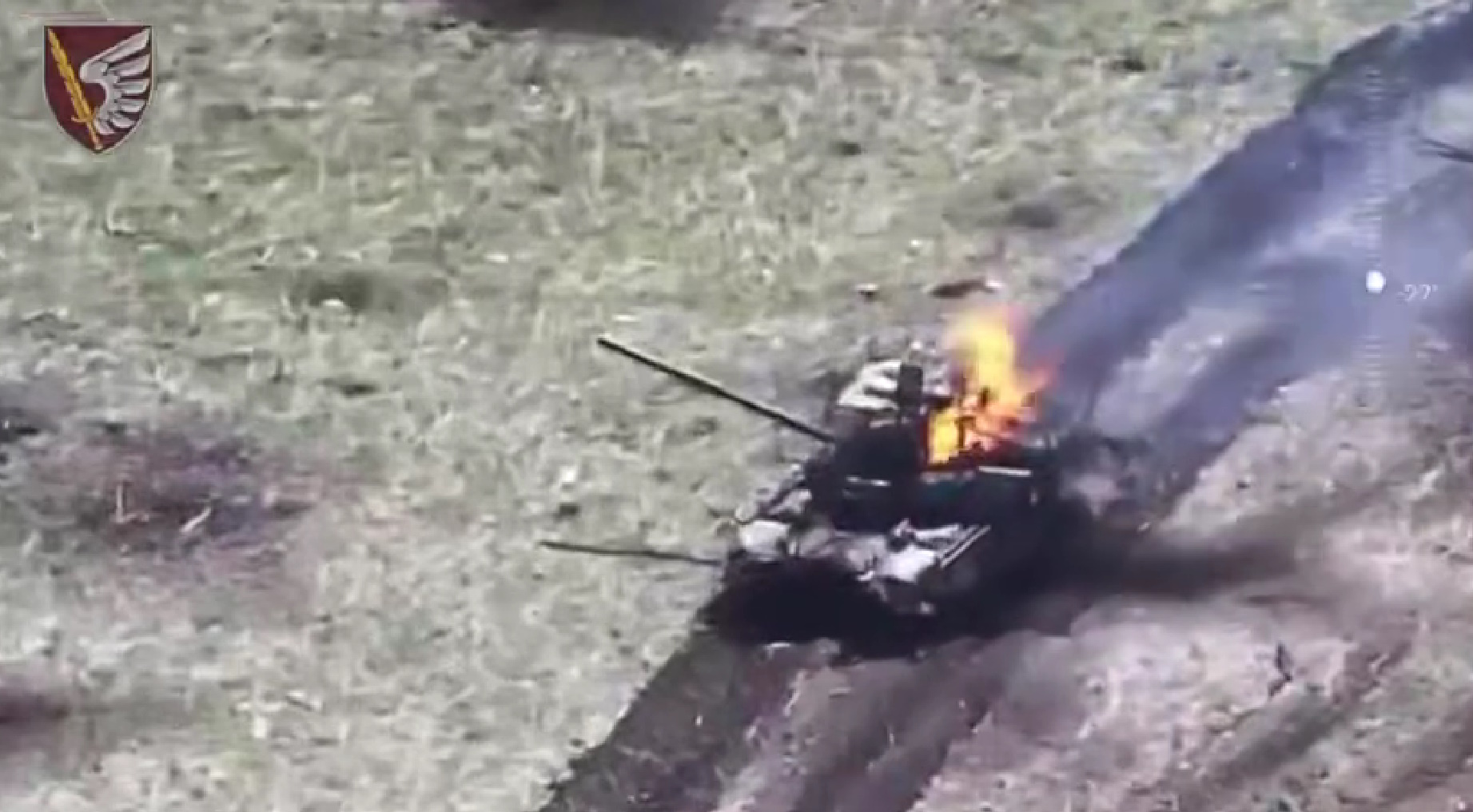 «Зупинивши панцерник, наші оператори ударних безпілотників продовжили атакувати вже виведений з ладу танк, аж поки той не загорівся повністю», – описали ситуацію в бригаді.
