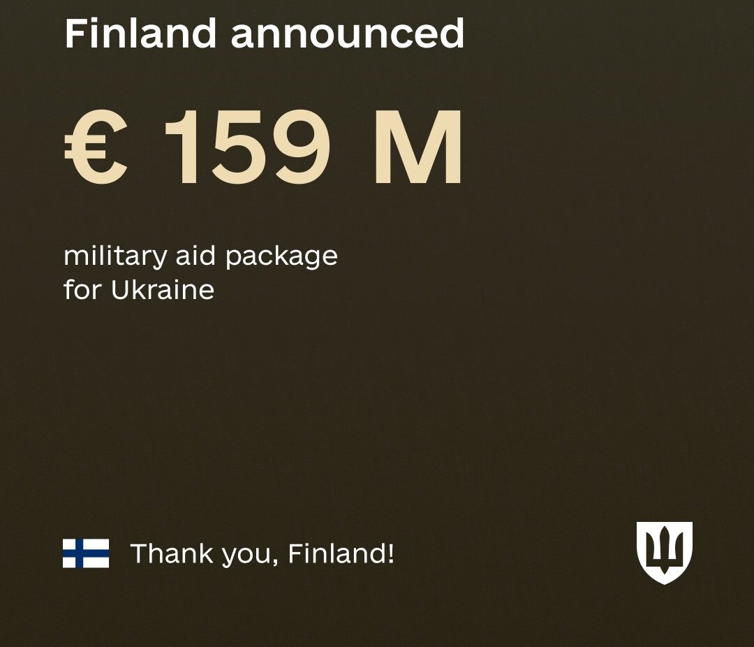 Фінляндія оголосила про 24-й пакет оборонної допомоги Україні на 159 мільйонів євро.