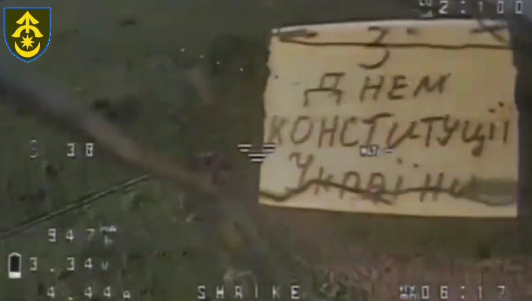 Наші захисники запустили по позиціях окупантів дрон з табличкою, на якій були написані привітання з Днем Конституції, який відзначають 28 червня.