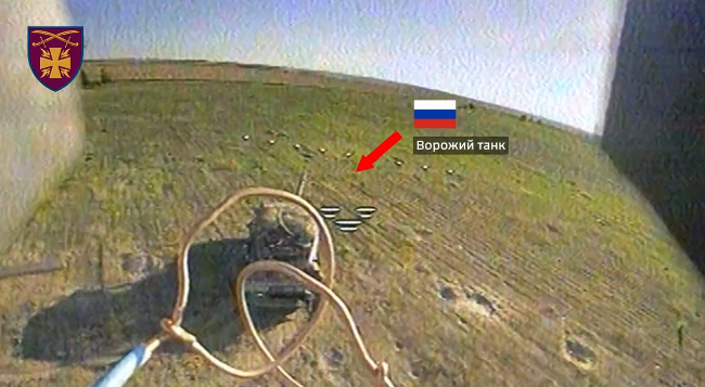 Оператори роти ударних безпілотних авіаційних комплексів 115-ї окремої механізованої бригади ЗСУ продемонстрували знищення ворожого танка.
